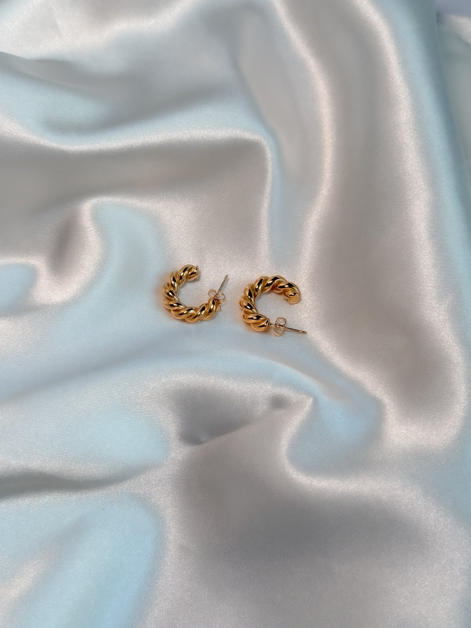 18K Gold Non-Tarnish Braided C Hoop Earring