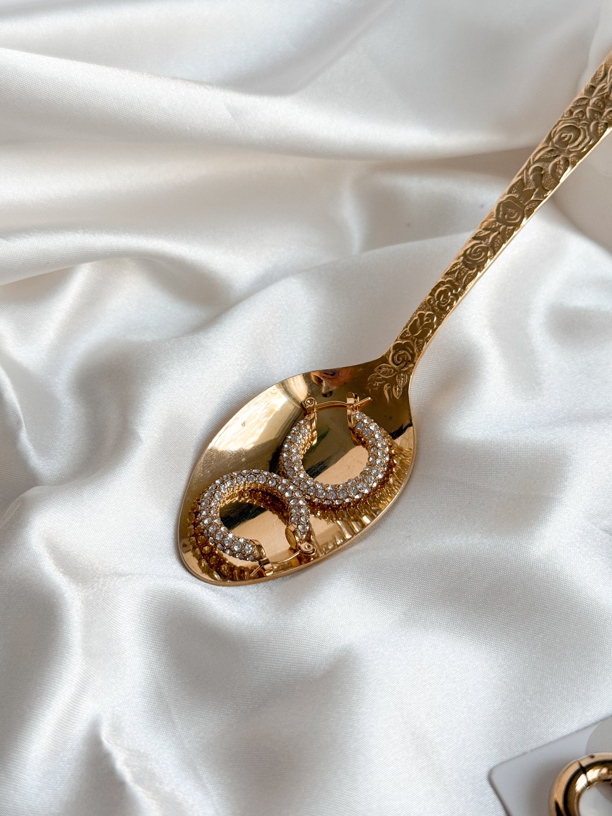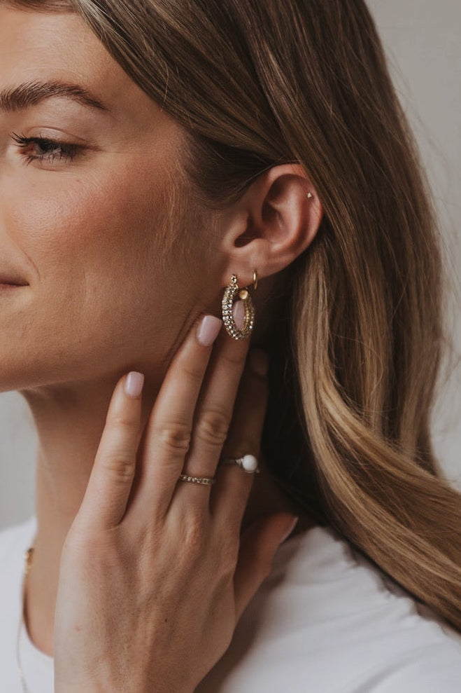 This is by far one of my fav earrings!! I’m a very simple gal and like minimalistic jewelry and although this hoop is tiny the gems on it still make me feel glamorous!! Highly recommend if you don’t want something too crazy but still want a little something extra! Also really cute to mix in if you have multiple piercings on one ear!